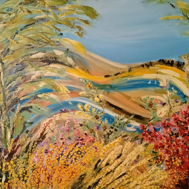 Clifftop, acrylic on canvas 90x90cm, by Donna Morgan