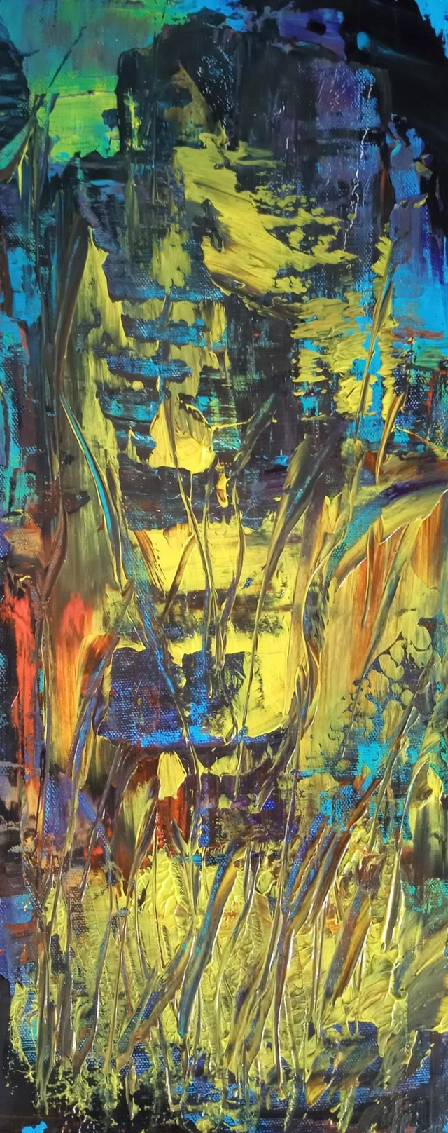 Reeds2 acrylic on canvas 20x50cm by Donna Morgan